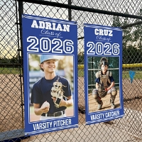 - Customize 4', 6' and 8' vertical banners with any name/title (up to 12 characters), any year, and any message (up to 20 characters)