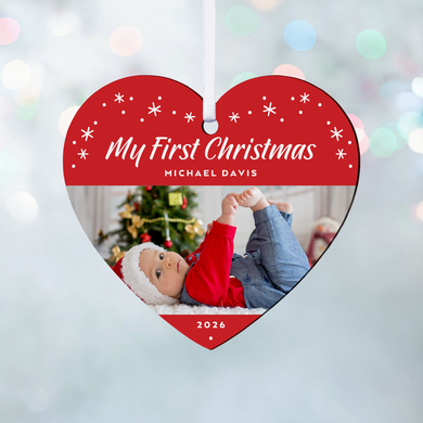 Baby's First Christmas Personalized Photo Heart Ornament