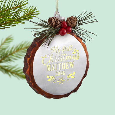 Baby's First Christmas Personalized Rustic Pine Illuminated Ornament