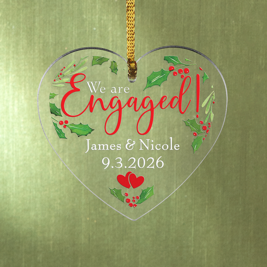An engagement announcement and ornament, all in one! Mark the occasion and share the happy news with family and friends.