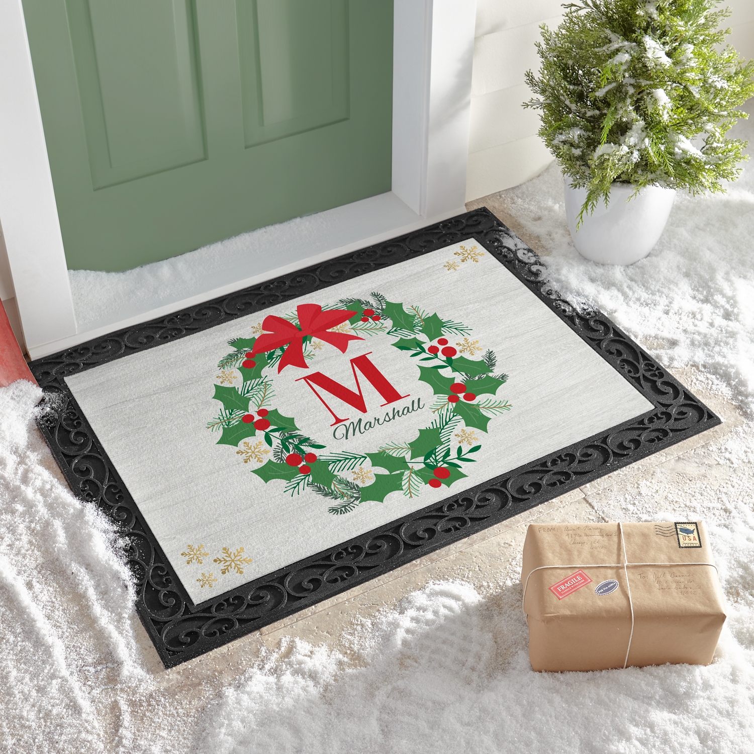 Step right in…we're celebrating the holidays! Welcome your guests with this cheerful and festive, expertly personalized doormat this Christmas season.
