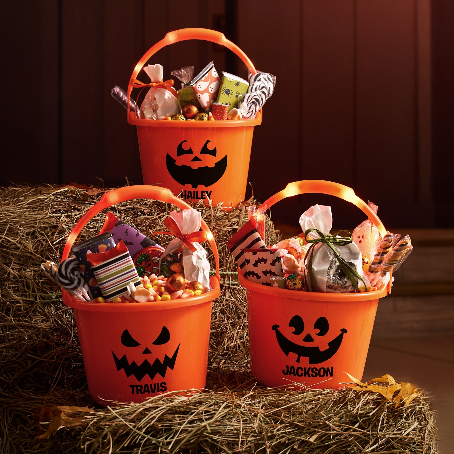 Illuminate their evening, and their expressions, with these amusing face candy buckets! Generously sized for all the sweets, and featuring glow-in-the-dark elements for nighttime safety.