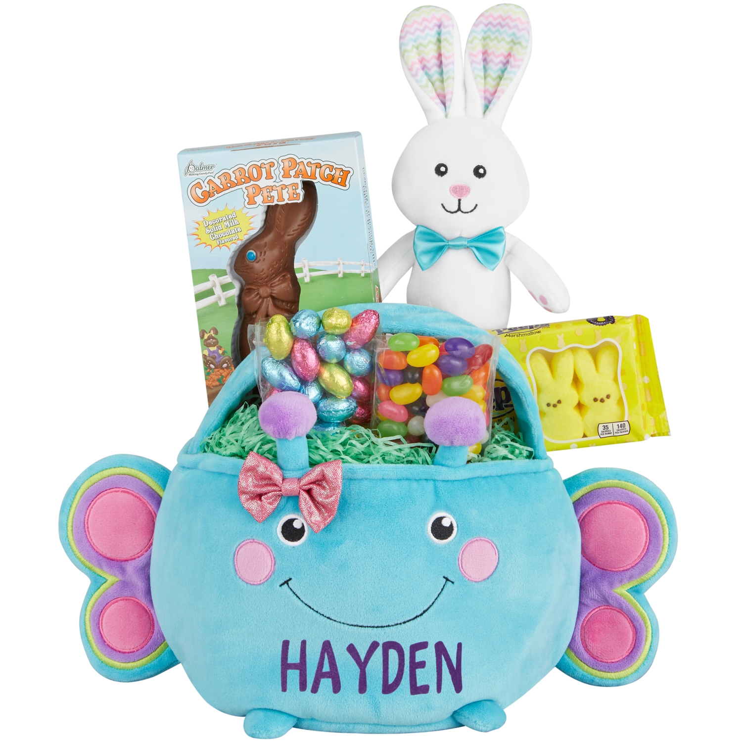 Product DescriptionHop to it and surprise your favorite bunnies with the sweetest, most playful basket ever! Choose a soft and snuggly pal that's ready to hold all their favorite Easter treats. Then add their very own name and get ready for ear-to-ear smiles.