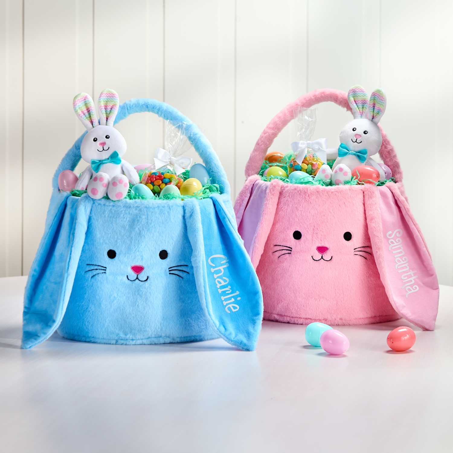 Product DescriptionA cuddly, adorable twist on the traditional Easter basket! This oversized, soft and cuddly bunny basket will deliver Easter morning smiles in the cutest way. Then it will double as a huggable friend all year long!