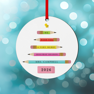 Festive Greetings Teacher Personalized Round Ornament