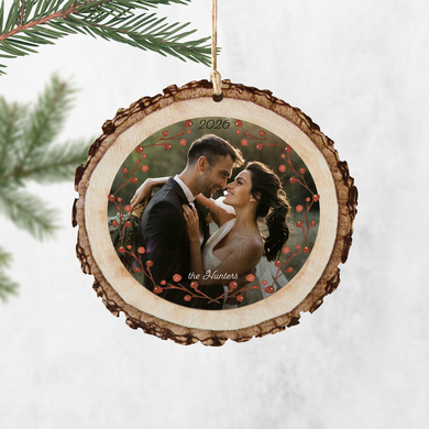 Product DescriptionThe rustic wood and holiday holly berries enhance the appeal of this exquisitely customized photo ornament. Add a cherished photo to create a truly unique gift.