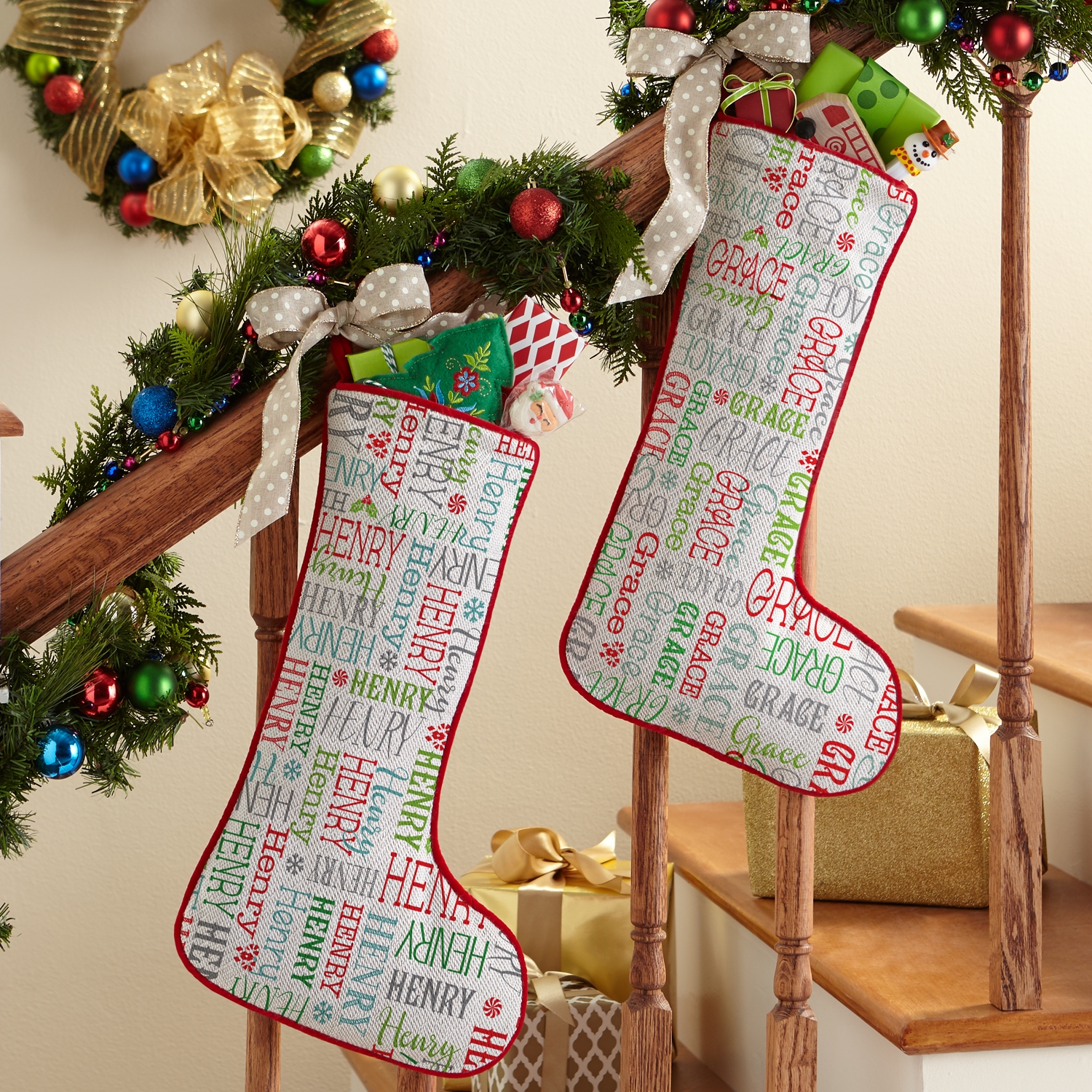 Product DescriptionCelebrate the holidays in signature style with a design that turns your name into a festival of Christmas colors. Plus, Santa won’t wonder who’s stocking he’s filling!