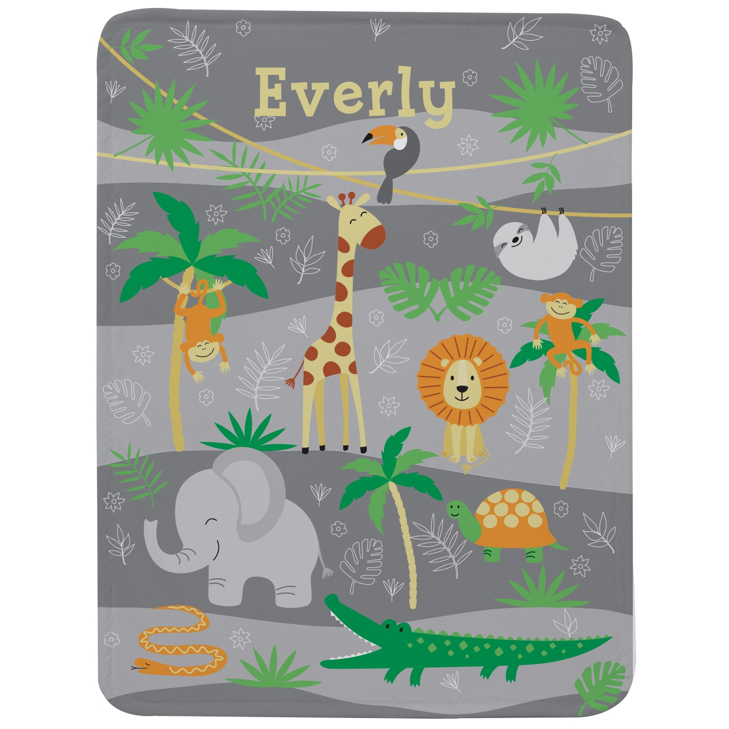 Delight your little one with these charming jungle friends on a special plush blanket, perfect for keeping them entertained and cozy.