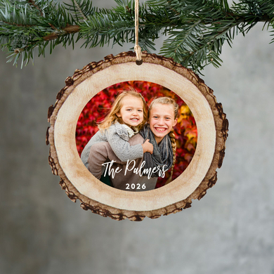 Bring the classic, rustic warmth to your home during the festive season with this charming ornament. Showcasing your cherished photo, this keepsake will be a delightful addition to your Christmas decorations for years to come.
