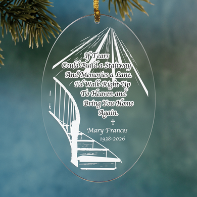 Pay tribute to your beloved departed by showcasing this sparkling acrylic ornament during the holiday season.