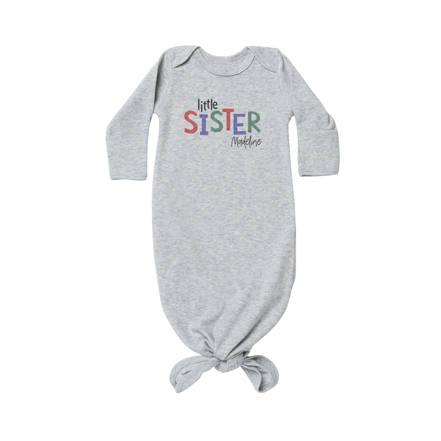 New Addition Baby Knotted Gown - Gray - Sister