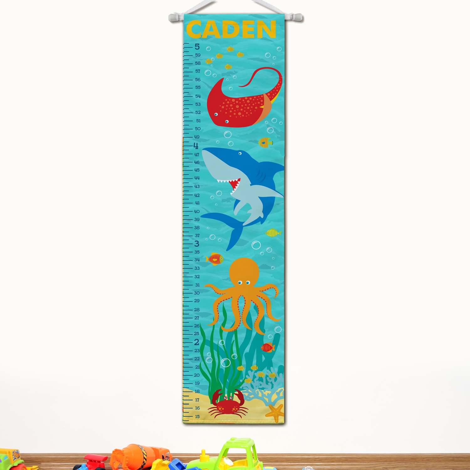 Product DescriptionCapture every inch of your little one's growth with this ocean-themed growth chart. Featuring an underwater design, it's the perfect way to keep track of every swimmingly good growth spurt while adding a touch of personality to their room.
