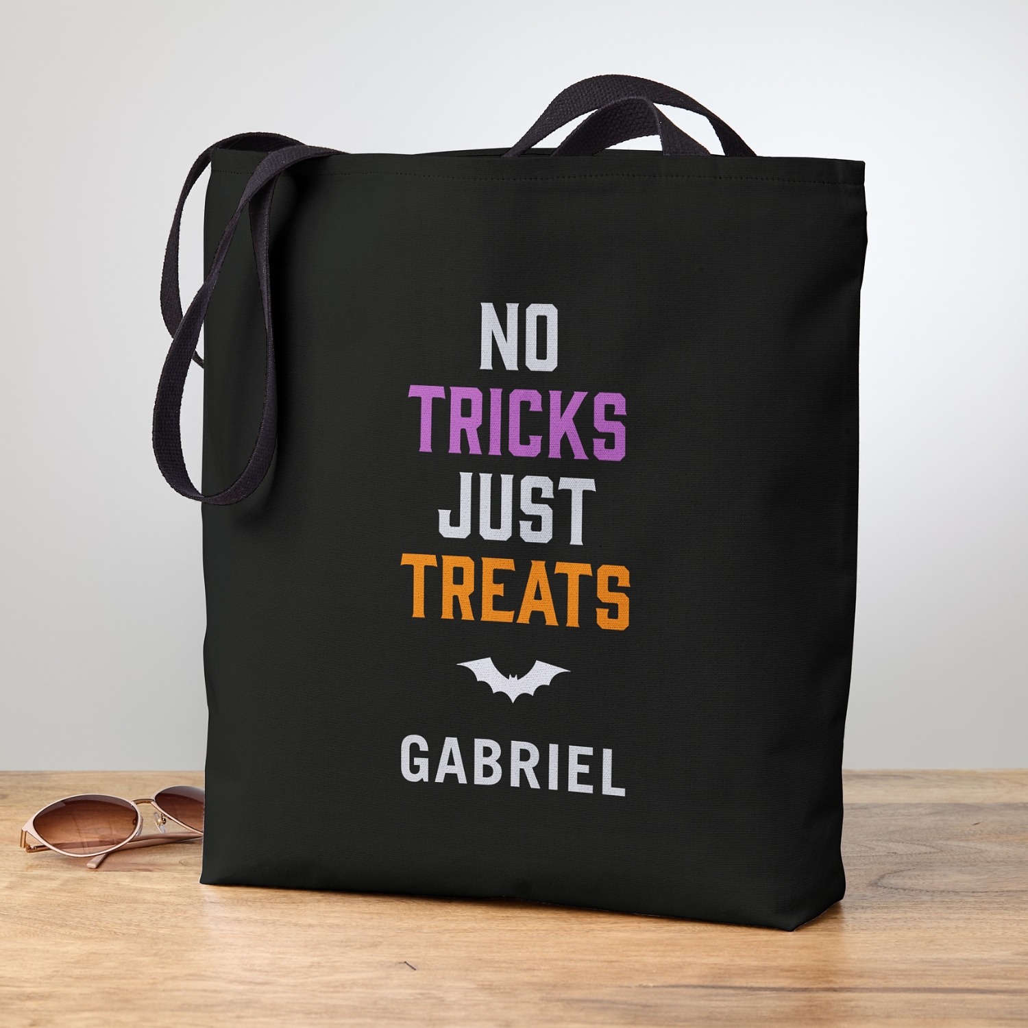 This ample-sized, custom tote is sure to come in 'candy' this Halloween. Fill it to the brim on the hunt for treats this holiday…no tricks!