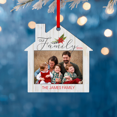 Warm holiday wishes radiate from this ornament, celebrating the love of family and the comfort of home.