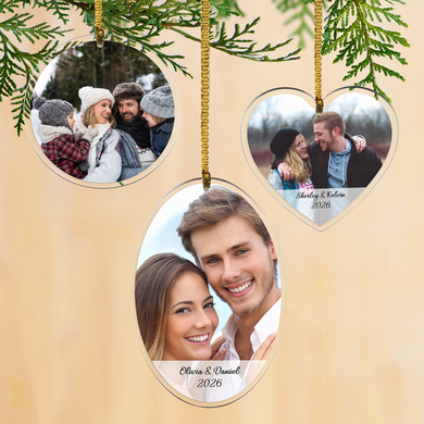 Product DescriptionHonor your most treasured moments with double the impact! These two-sided acrylic photo ornaments showcase your favorite memories in festive holiday designs, crafted from crystal-clear, durable material.