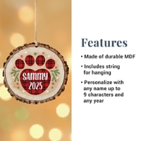 Plaid Paw Print Rustic Wood Personalized Round Ornament