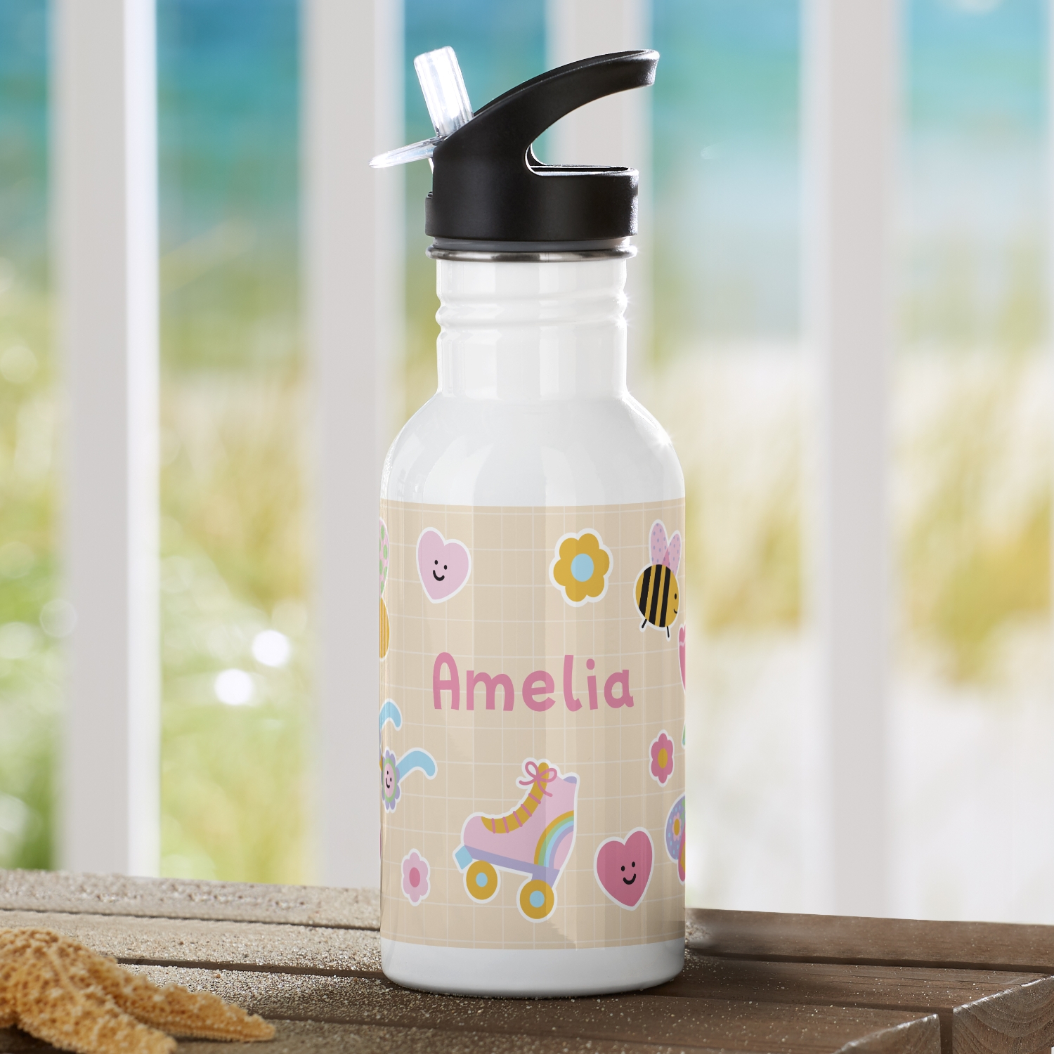 Product DescriptionBring the joy of a sticker collection to every sip. This vibrant water bottle transforms hydration into a colorful adventure, showcasing a personality as unique as its owner.