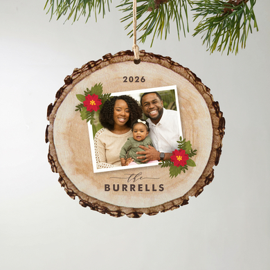 Product DescriptionBeautiful poinsettia flowers and appealing rustic wood come together to create a memorable Christmas tree ornament that will be cherished for years.