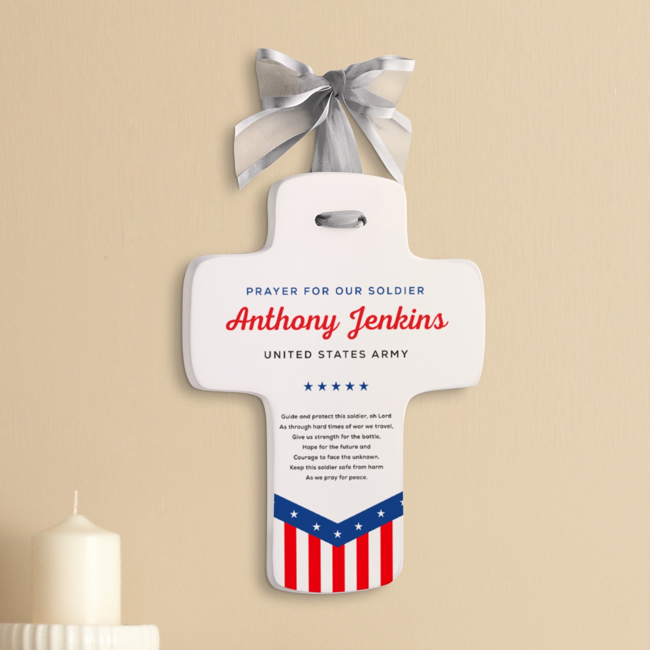 A touching tribute that honors the courage and dedication of a brave soldier, this keepsake cross is engraved with a message of love and respect. Its elegant yet impactful design offers solace and tranquility to those who hold dear the memory of a hero.