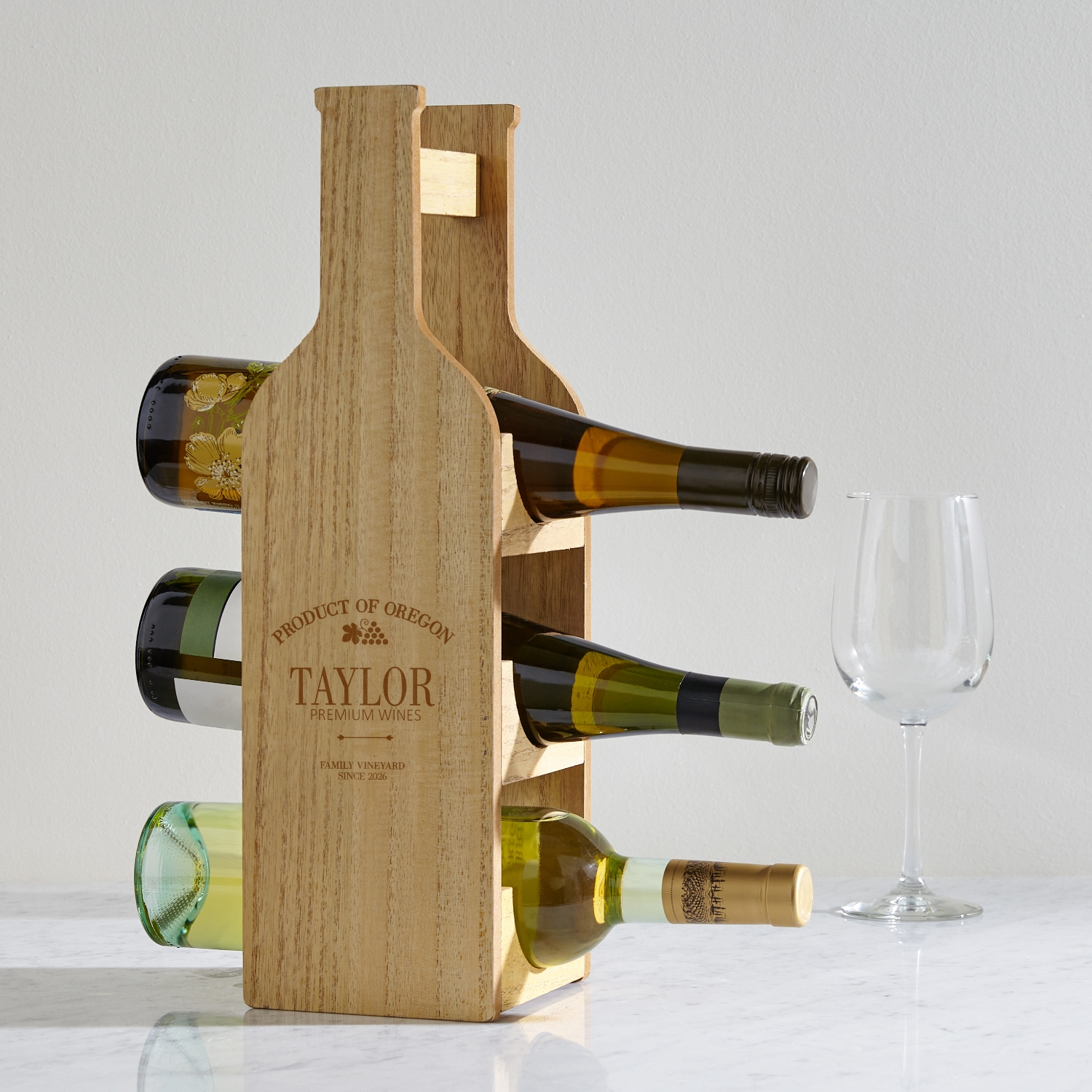 Ensure their beloved wines are always within reach. This wooden wine bottle holder offers a charmingly rustic home for their favorite bottles and enhances any space.