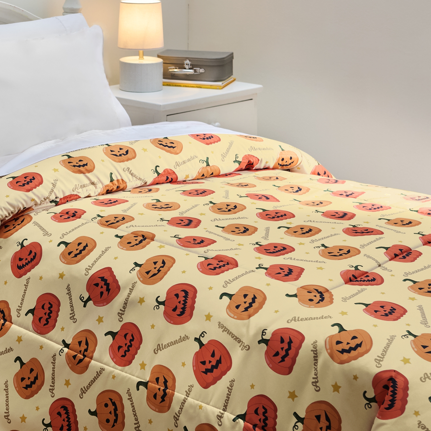 Product DescriptionSpooky or smiley, this super cozy jack-o-lantern comforter will keep you warm on those crisp fall nights. Get into the holiday spirit and snuggle up.