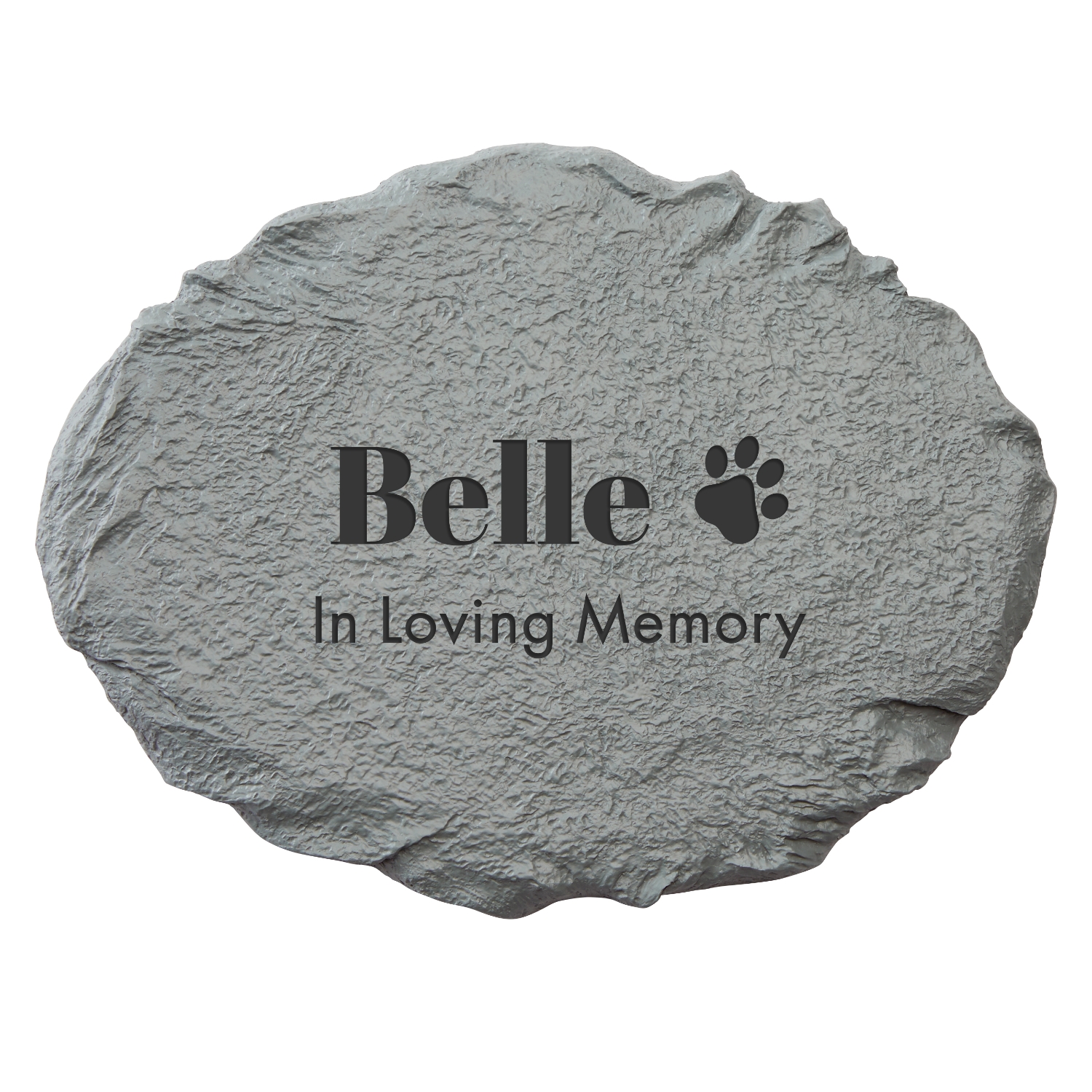 Product DescriptionCreate a special place in your garden to remember a beloved pet. This custom stone can be displayed indoors or out to serve as a special tribute to your four-legged family member.