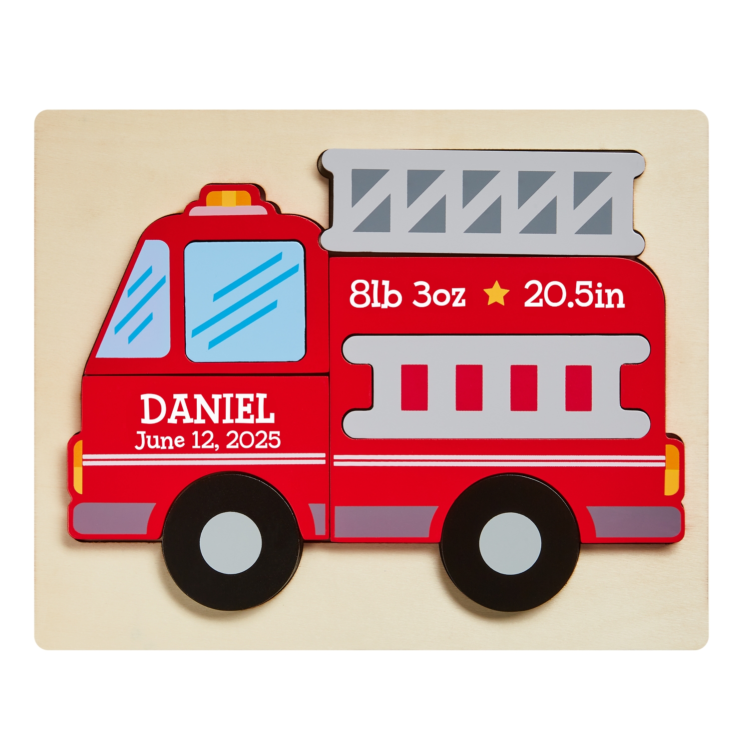 Shaped Wooden Baby Info Puzzle - Firetruck