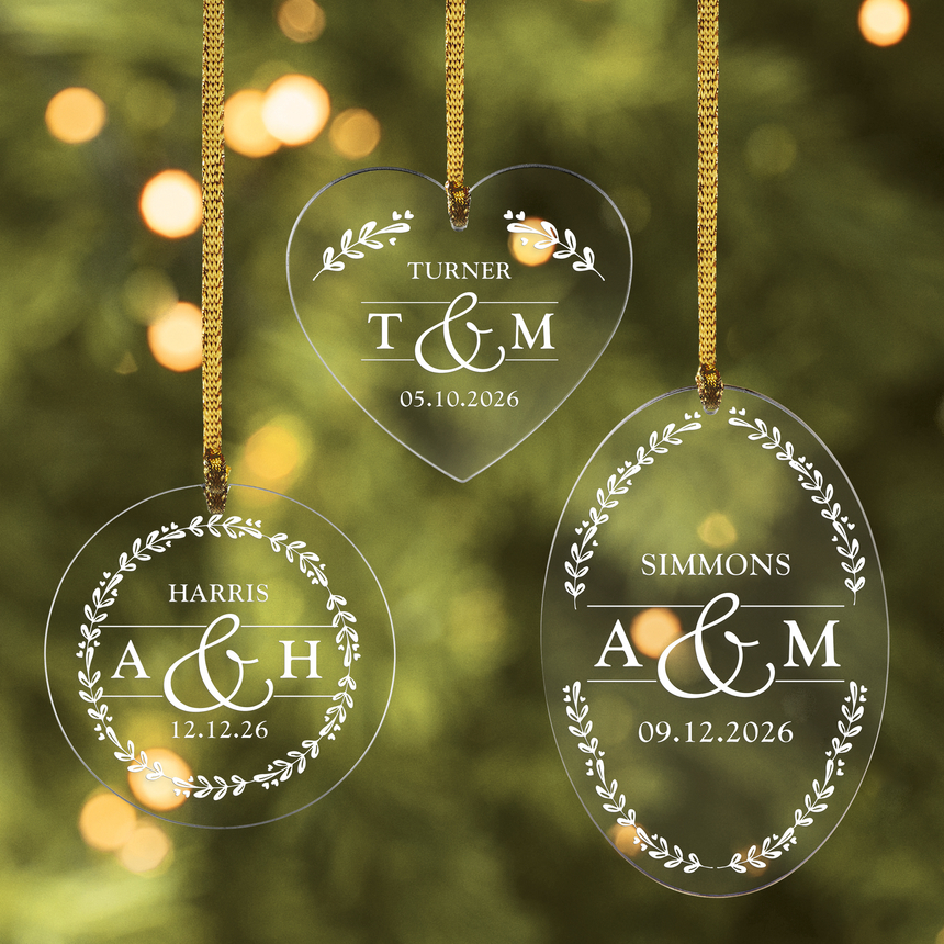 Illuminate the tree as lights dance and shimmer on this sleek and contemporary ornament. An elegant way for a newly united couple to showcase their love story.