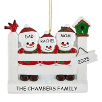 Introducing the most charming snowman family you've ever seen! Your snowman crew will warm your heart (without melting) on this memorable keepsake ornament.