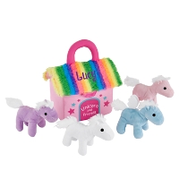 - Set includes 2 unicorns, a horse, and Pegasus; each creature creates a distinct sound, rattle or squeak