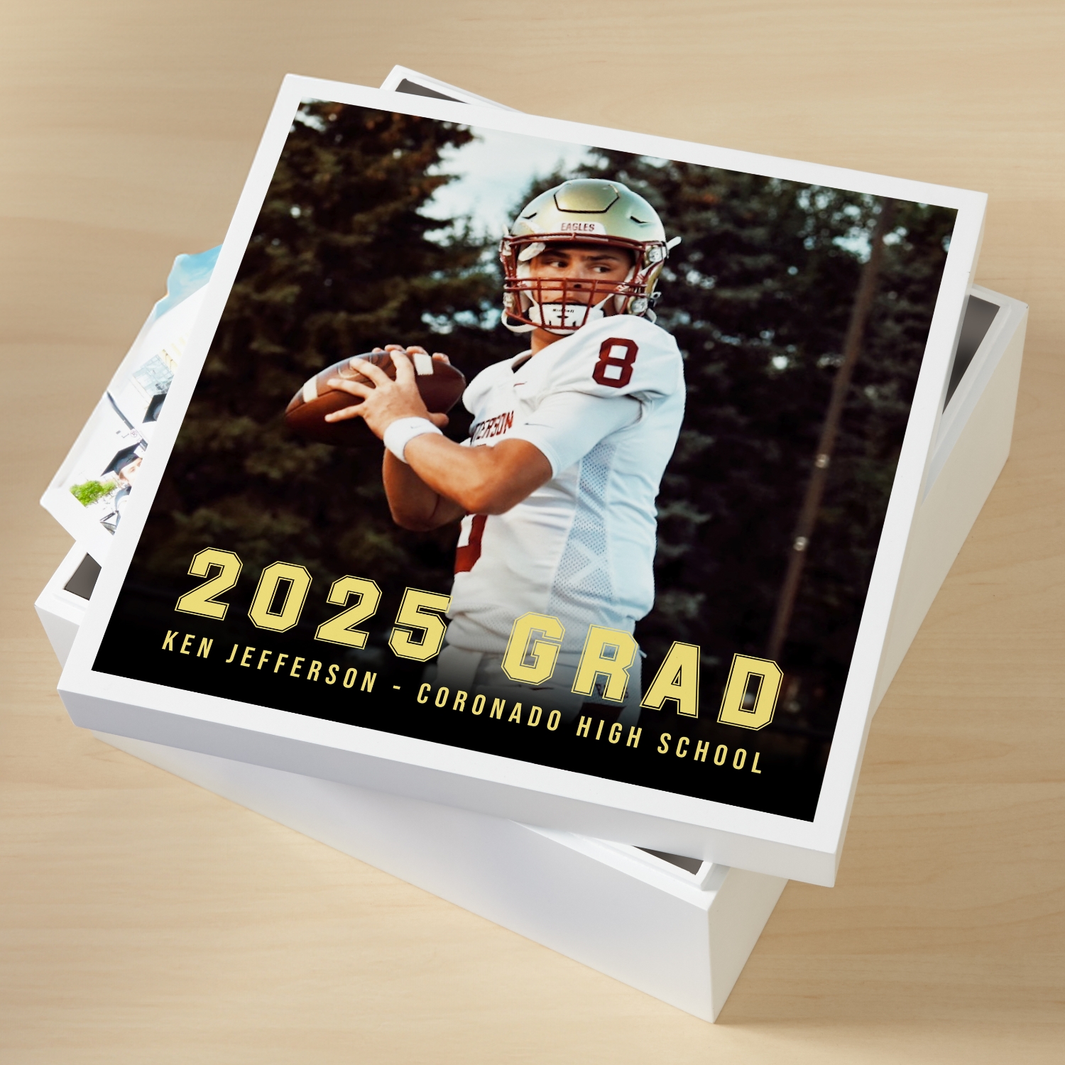 A memory keepsake box that captures all the memories of graduation. Ideal for holding awards and cherished photos from their academic journey.