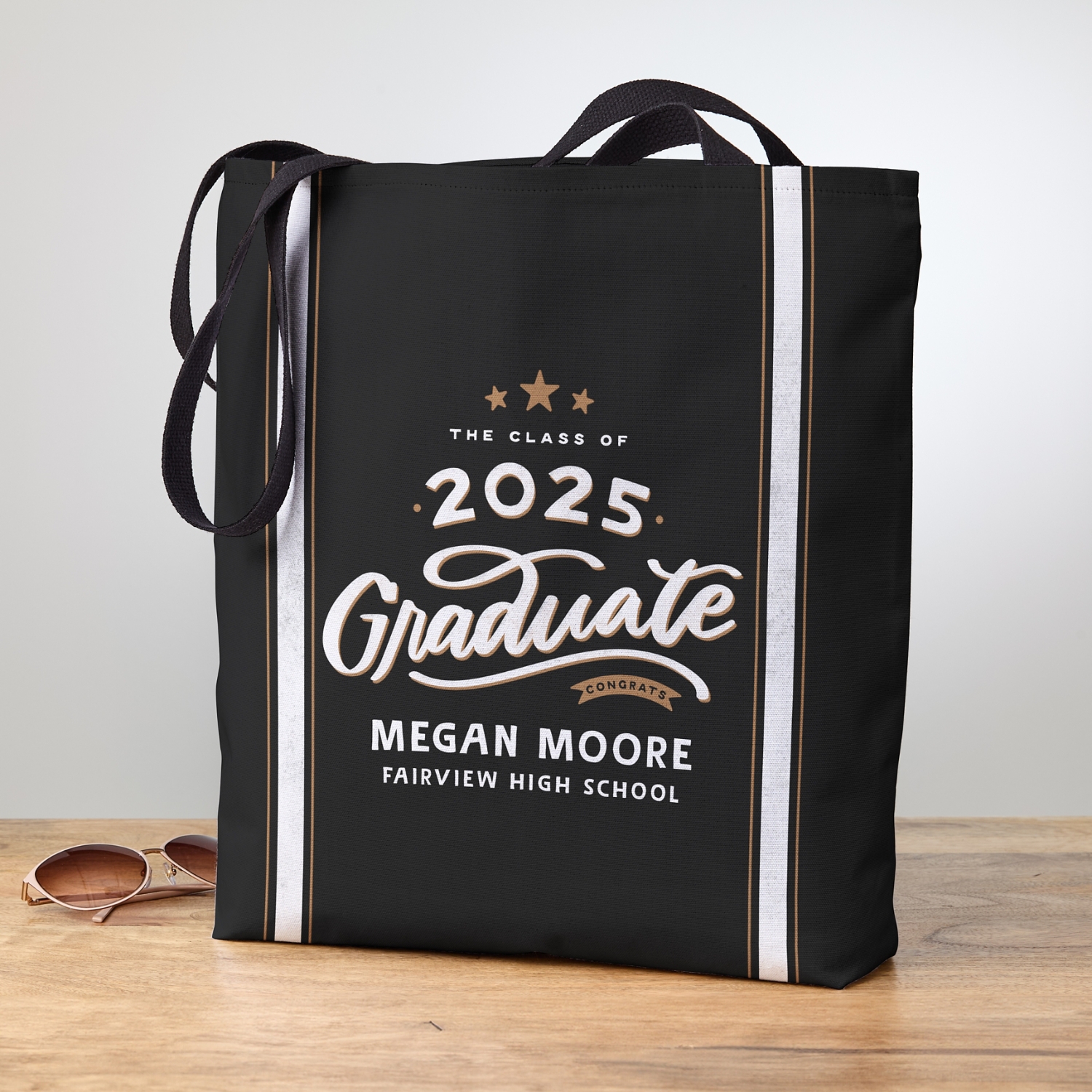 Celebrate the journey ahead with this timeless, custom graduation tote. It's stylish, functional and ready for wherever life takes your grad.