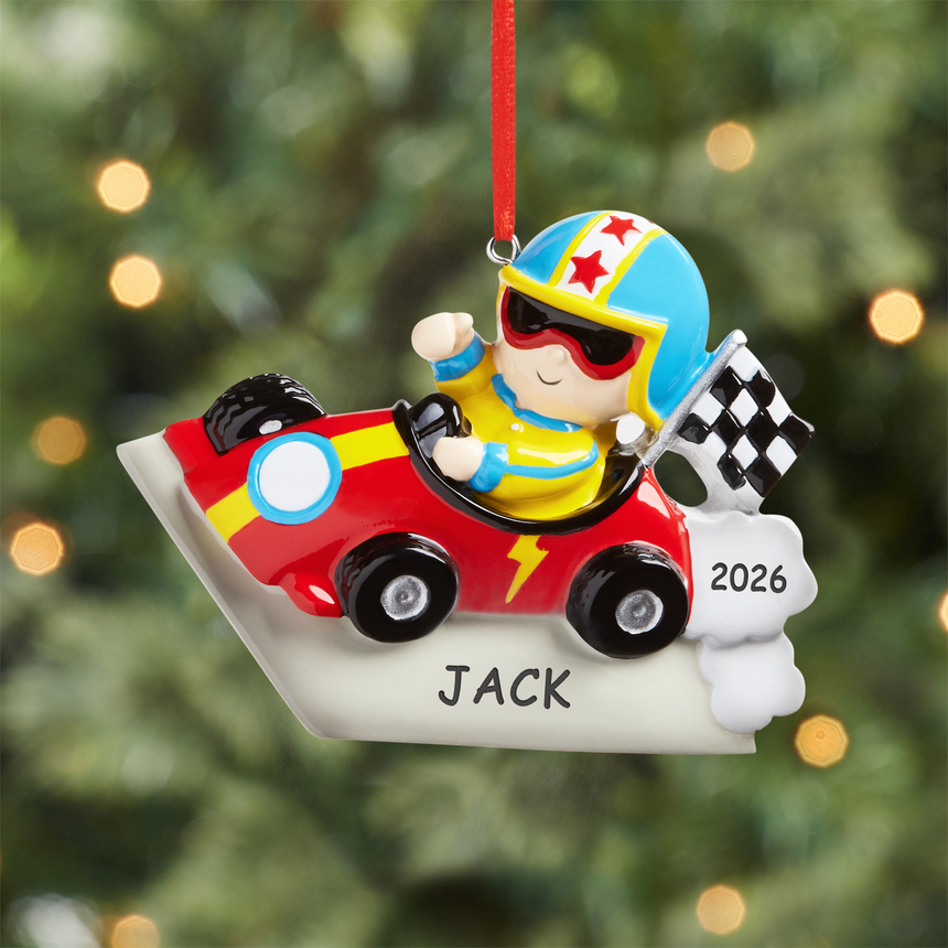 Discover an ornament that will capture the heart of your little racing enthusiast. Watch as they eagerly hang it on the tree!