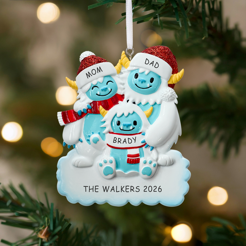 What's more Christmassy than a snowy setting and a yeti? A whole yeti family of course! Add all the members of your family to this whimsical and fun ornament for a special holiday touch.