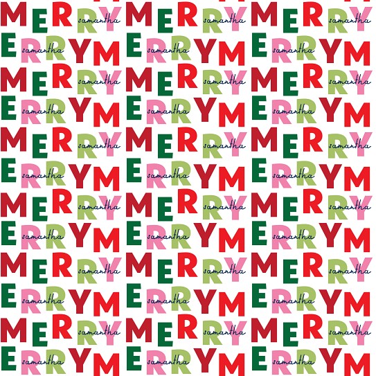 Product DescriptionBright and festive, this custom wrapping paper layers cheerful “Merry” in bold Christmas colors beneath their name, making every gift feel extra joyful and just for them.
