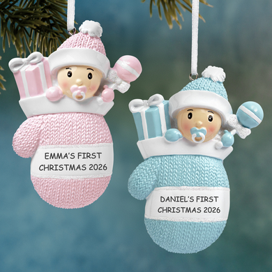 Celebrate the joy of a little one's very first Christmas with this delightful mitten ornament, perfect for proud parents or grandparents!