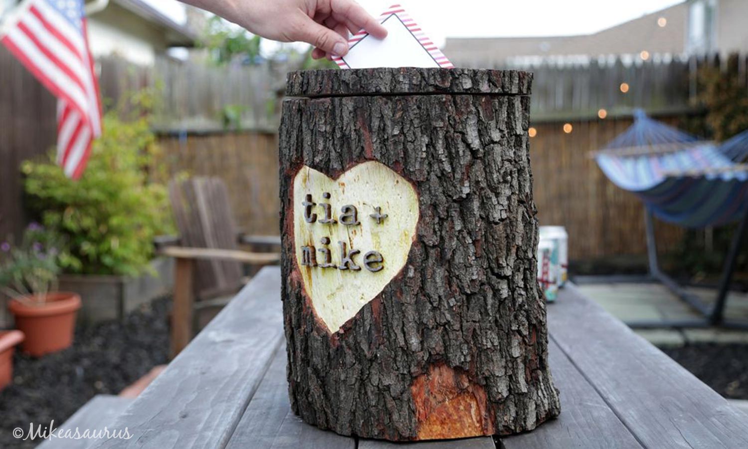 This DIY log card box by Mikesaurus on Instructables is too cute! It’s perfect for outdoor weddings, rustic weddings or nature lovers. Plus, you can keep it as a garden decoration for years to come.