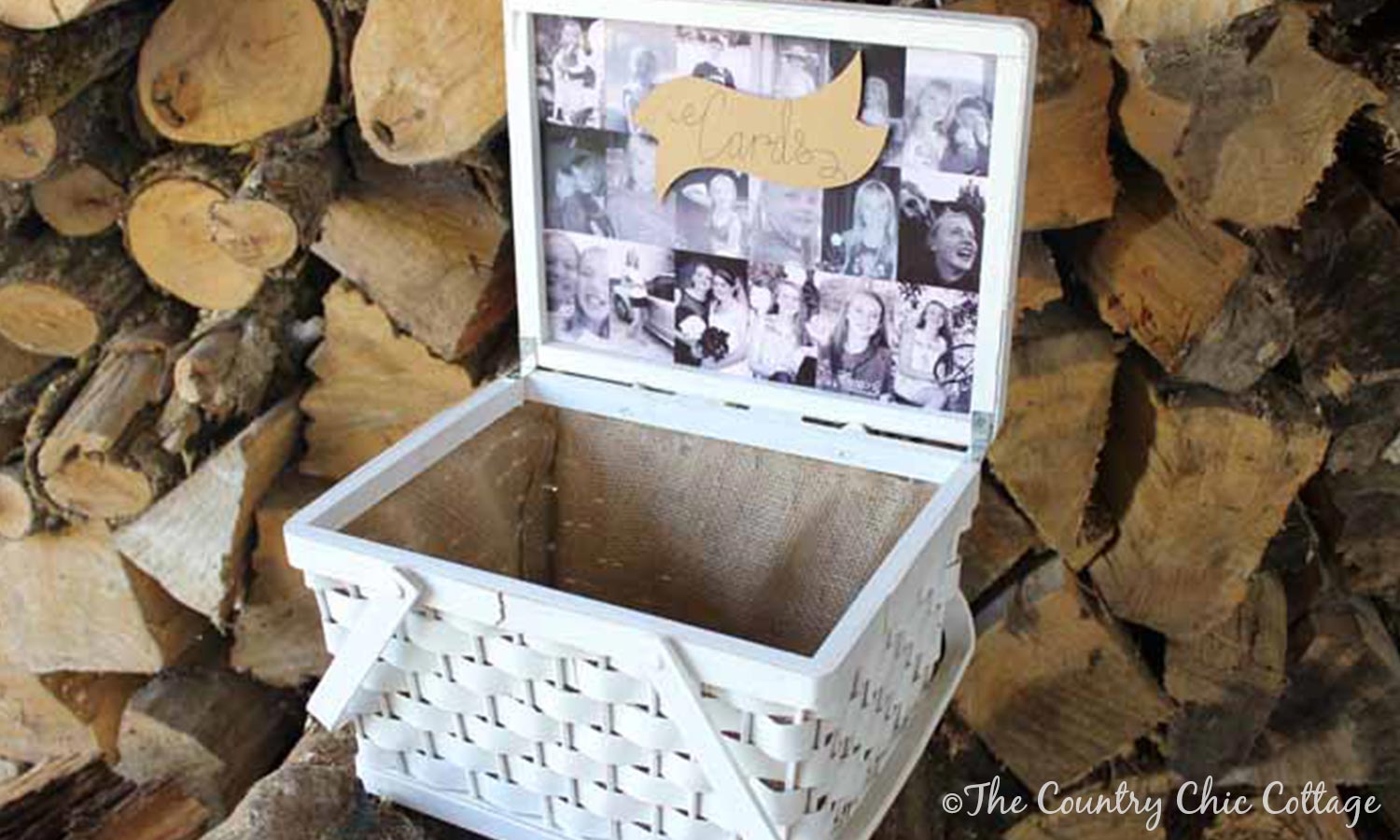 This DIY project from The Country Chic Cottage uses an old picnic basket to gather cards. The wicker and burlap combo is perfect for rustic weddings. Decorate it with your engagement photos for a personal touch.