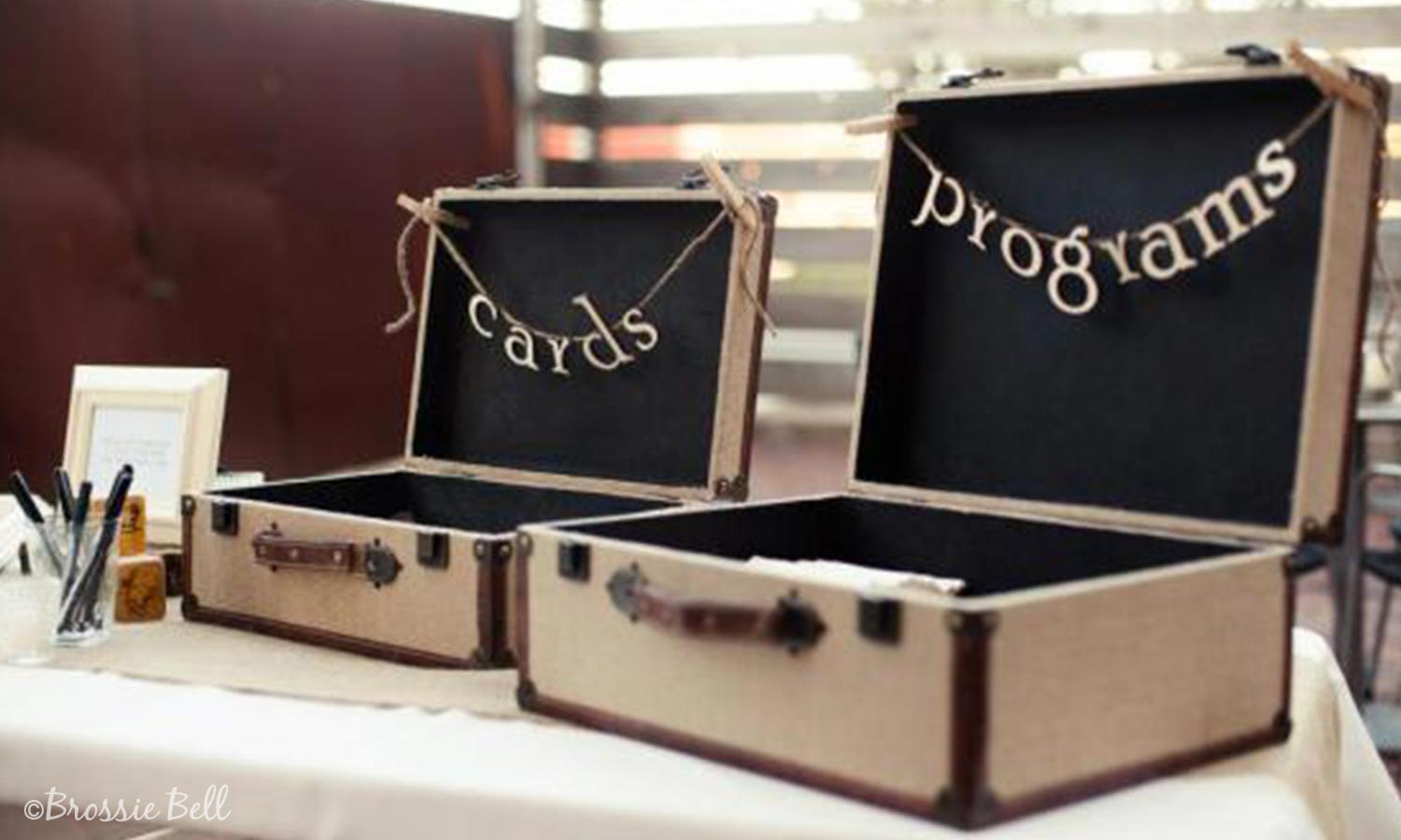 Flaunt your taste for all things travel with vintage suitcases like these ones from Brossie Bell. Once the night is done, toss your essentials in here and get to honeymooning!