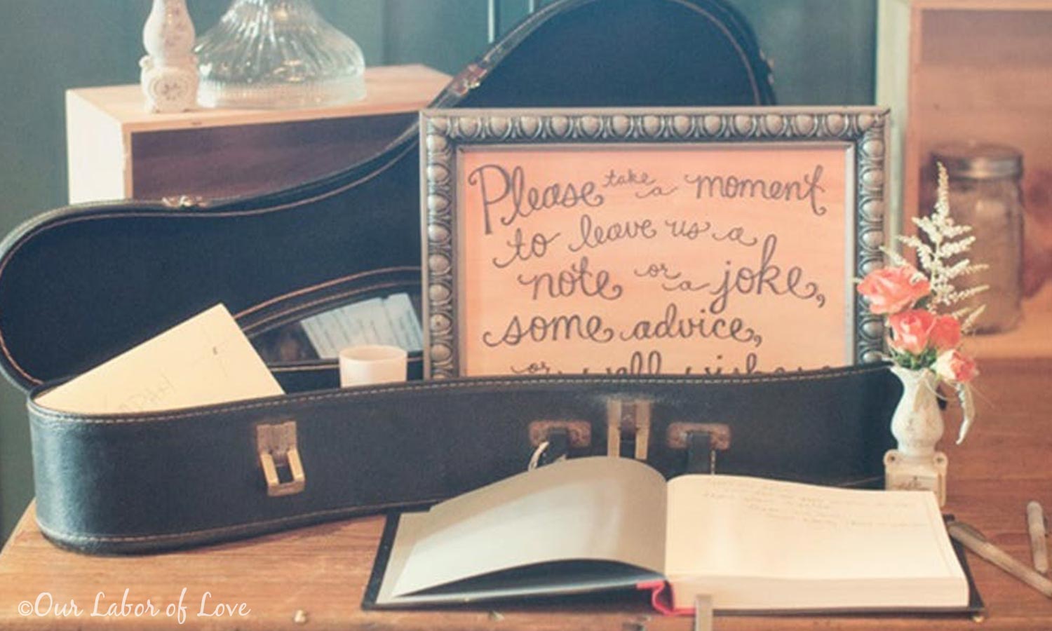 This card box, captured by Our Labor of Love, is ideal for all of the music lovers out there. The ample space in the guitar case leaves plenty of room for extra decorations, such as signs and bouquets.