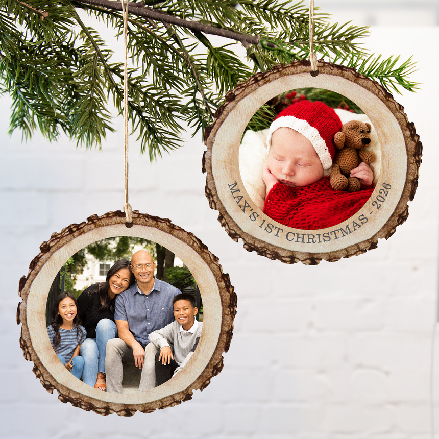 Combine a touch of woodland charm with your favorite seasonal snapshot to create this truly unique ornament.