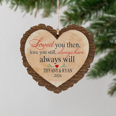 Forever Love Rustic Personalized Wood Heart Ornament