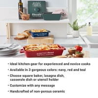 Expertly handcrafted stoneware ensures even baking and presents beautifully at the table. Make it extra special with a heartfelt message dedicated to the family chef.