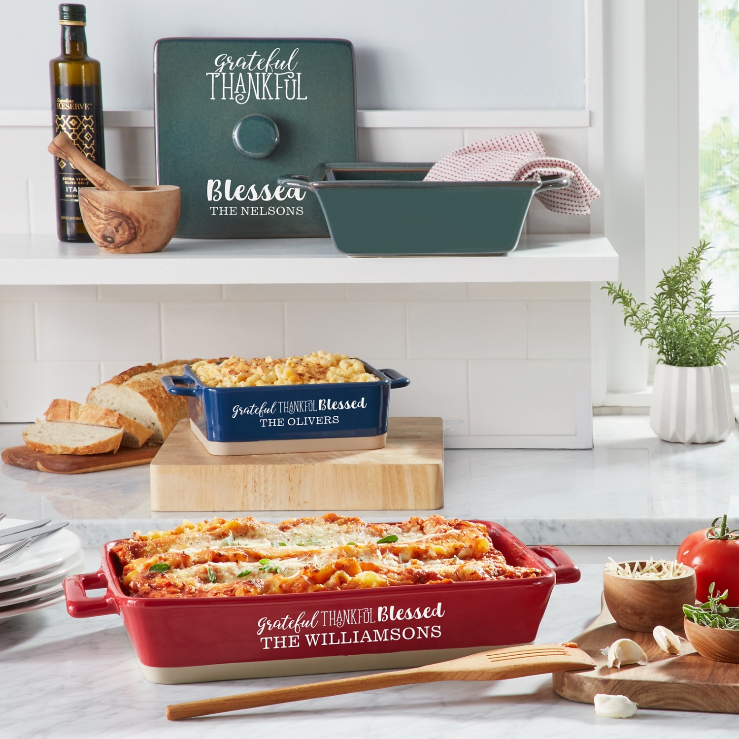 Grateful, Thankful, Blessed Personalized Stoneware Collection