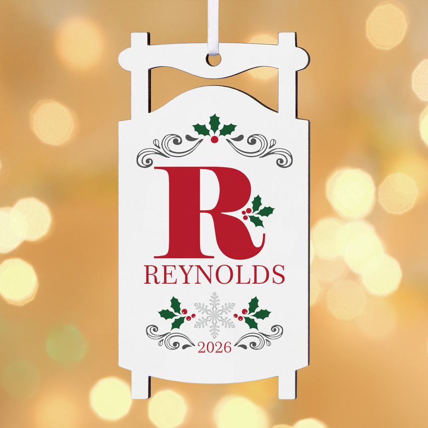 Rustic Initial Personalized Sled Ornament
