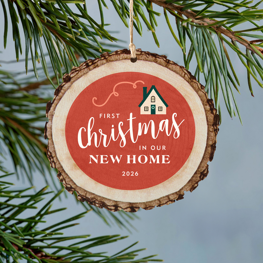 "Home Sweet New Abode." Commemorate your first Christmas in your new dwelling with this charming, quirky, stylish, minimalist, rustic, personalized Christmas tree decoration.