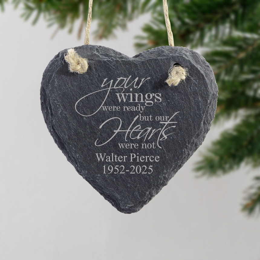 Remembrance Wings Personalized Heart Slate Ornament