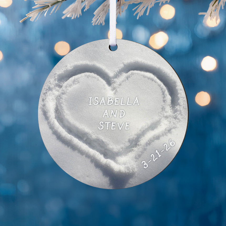 This heartwarming snow-inspired ornament captures a tender sentiment and never fades, symbolizing your enduring love for one another.